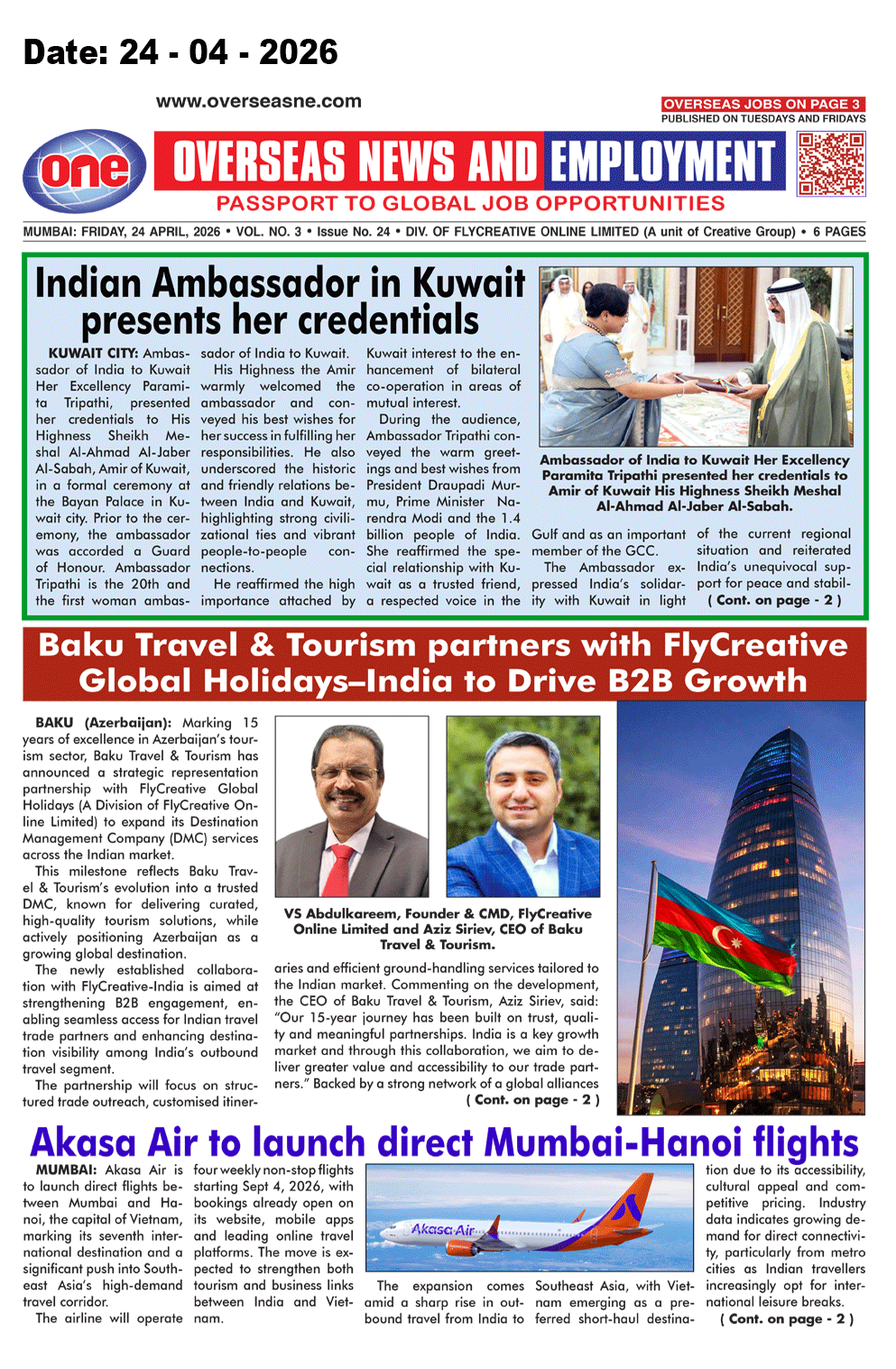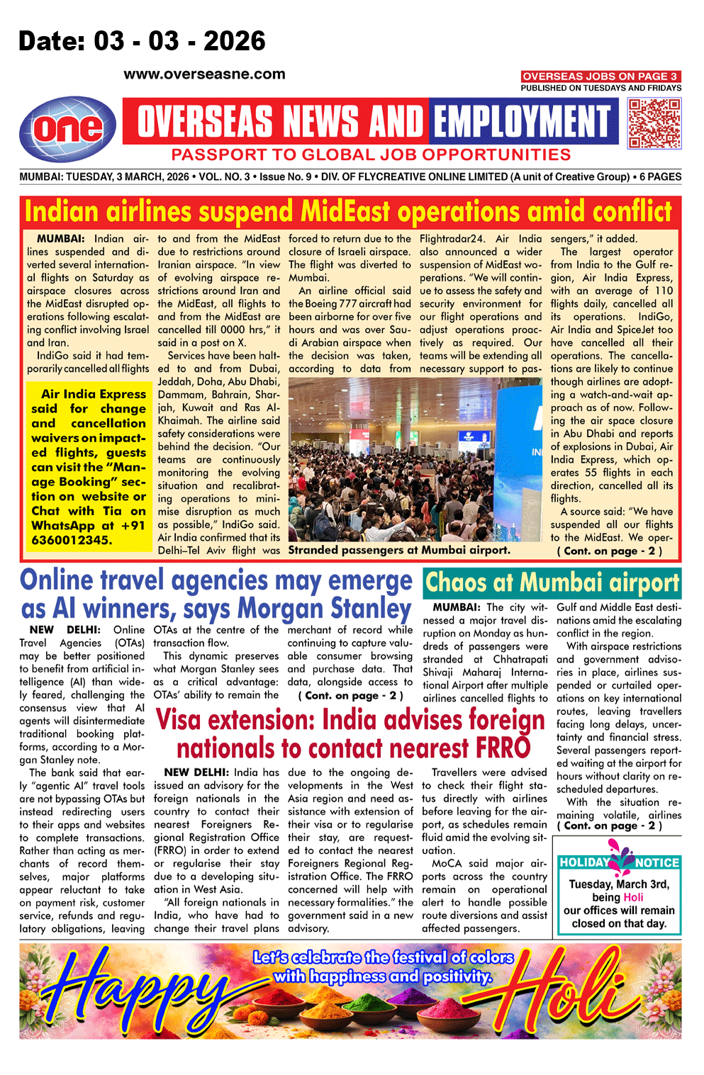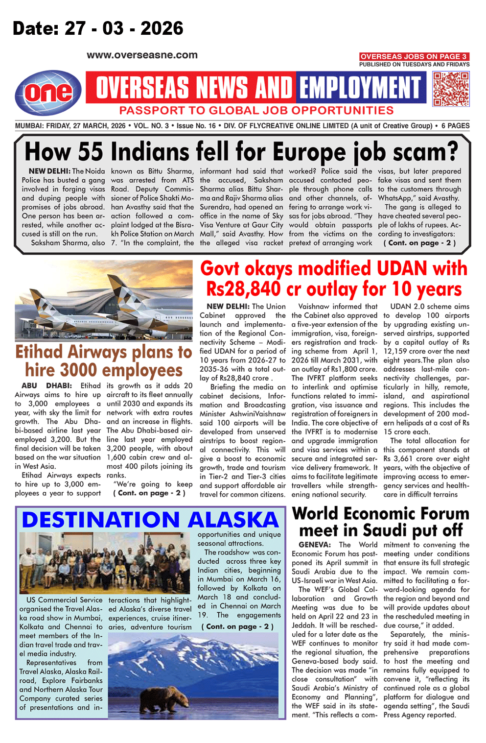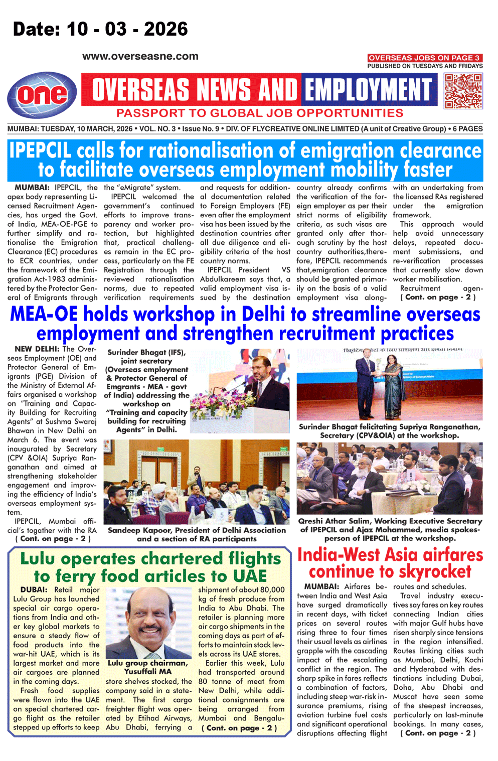 Overseas News And Employment is a division of Fly Creative Online Pvt Ltd, Mumbai.
