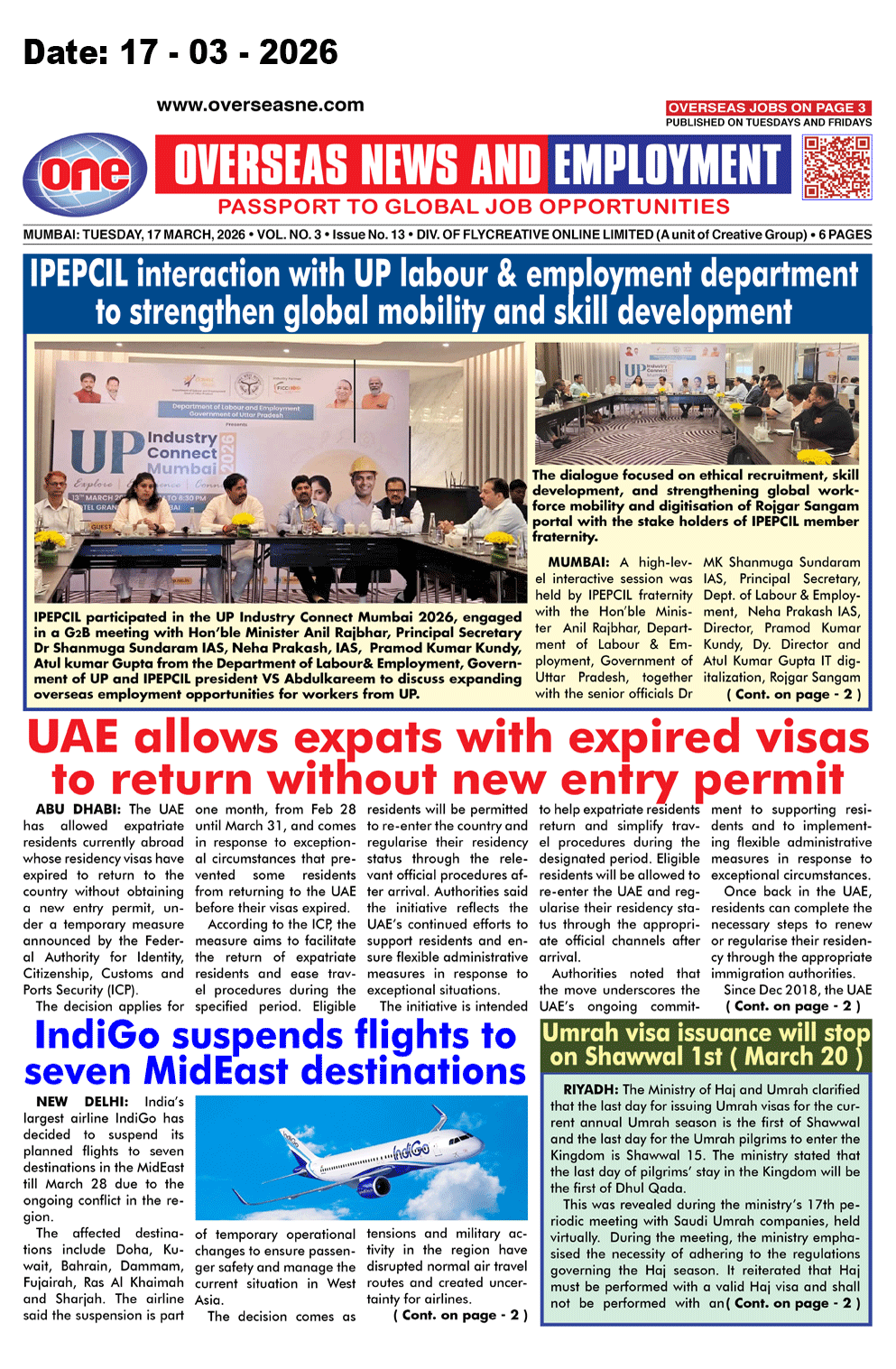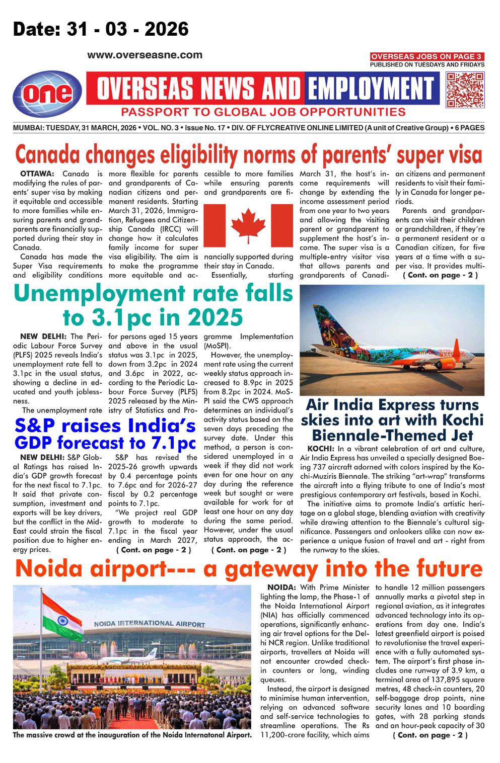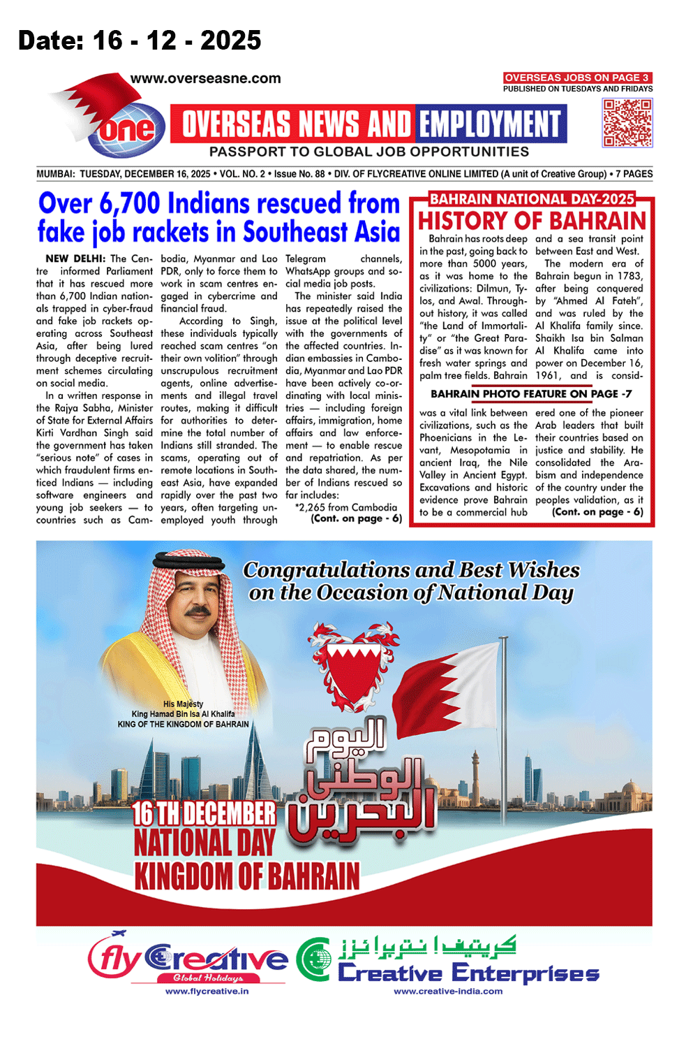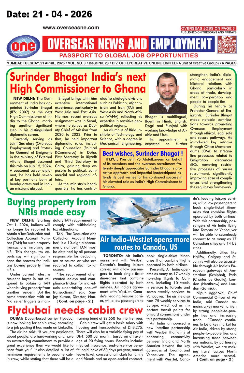 Overseas News And Employment is a division of Fly Creative Online Pvt Ltd, Mumbai.