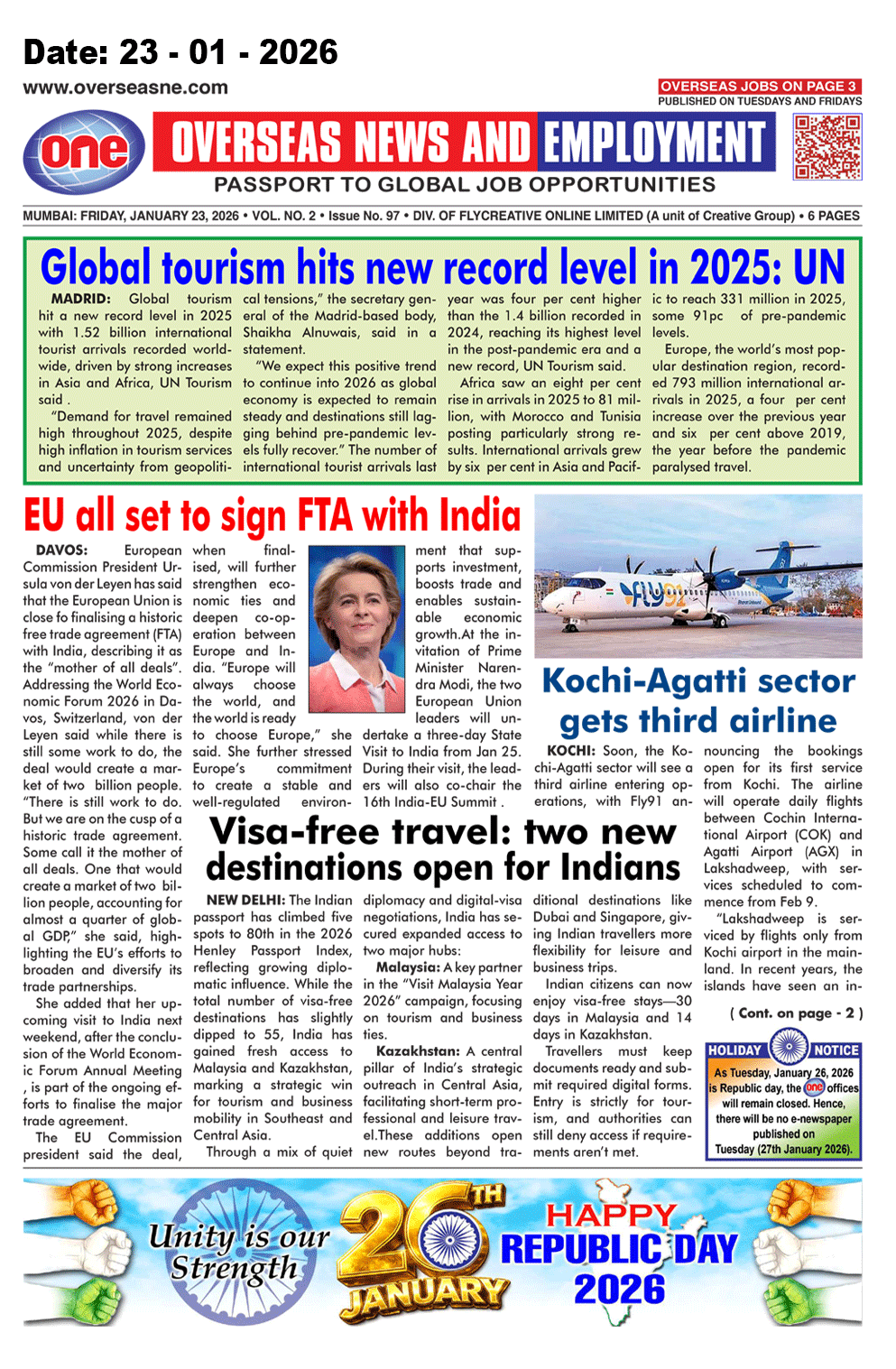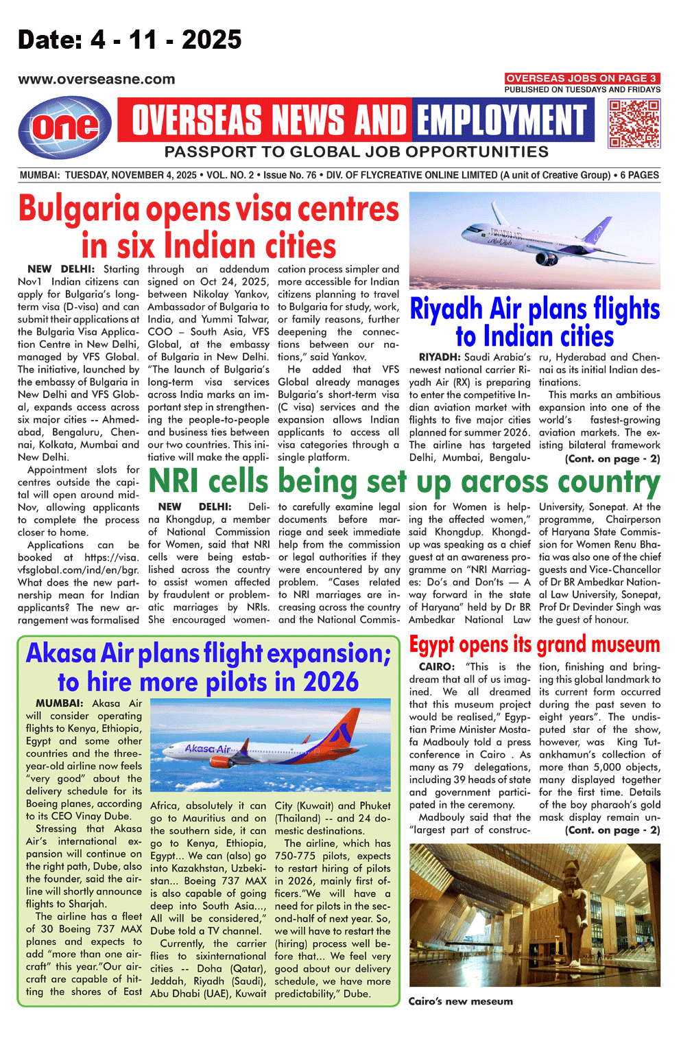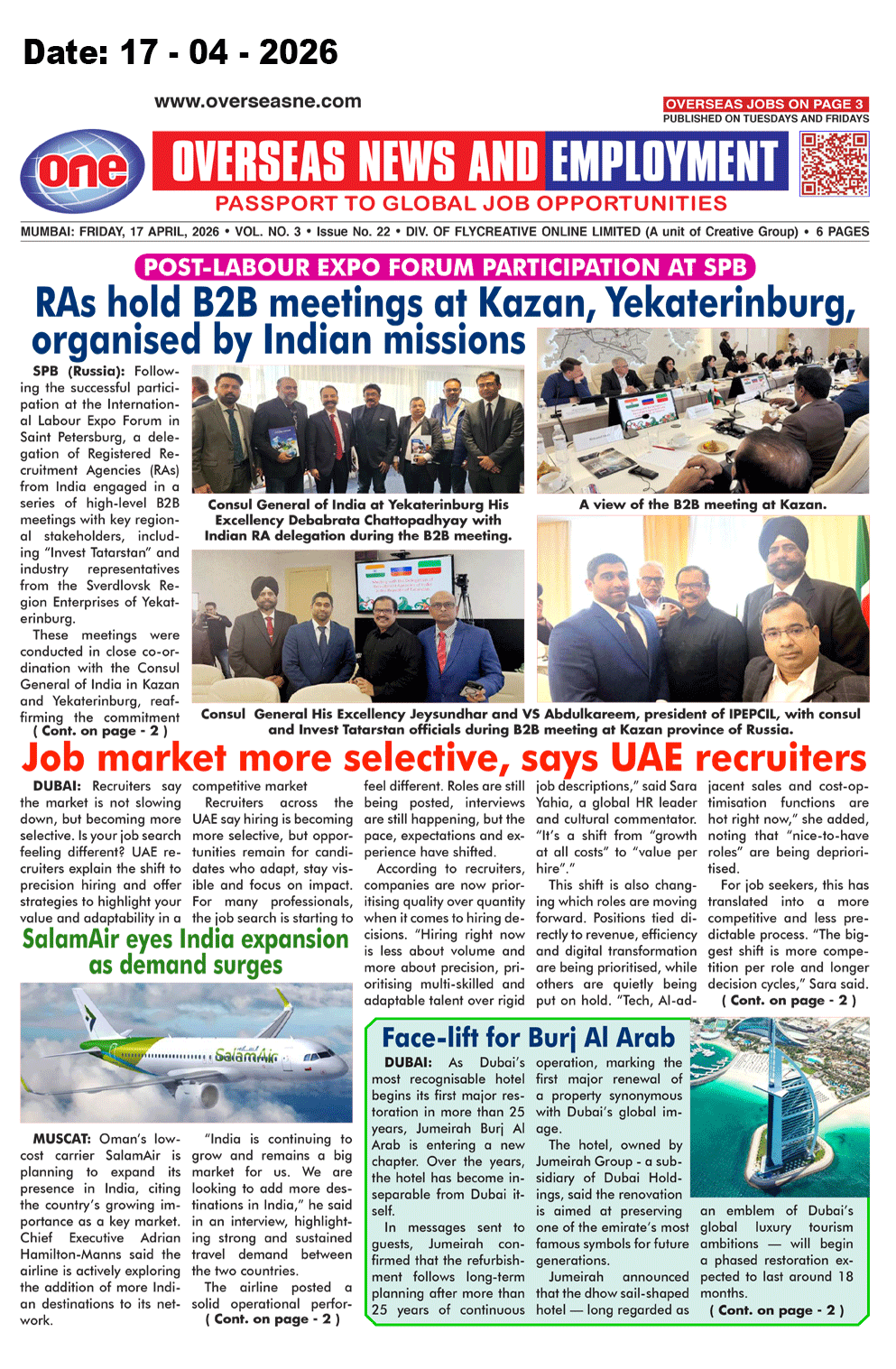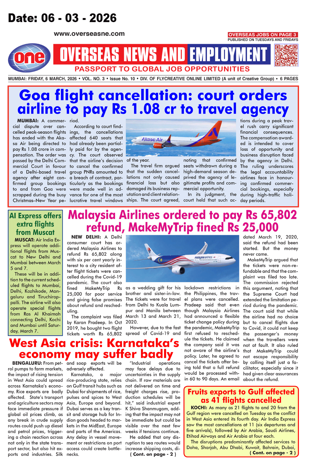 Overseas News And Employment is a division of Fly Creative Online Pvt Ltd, Mumbai.