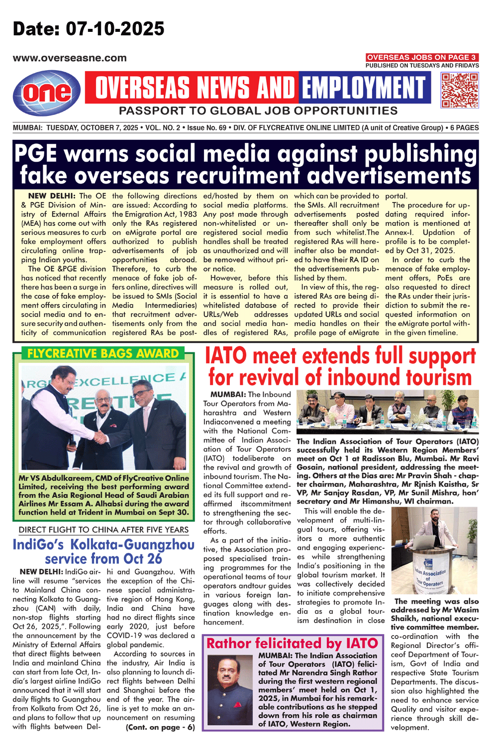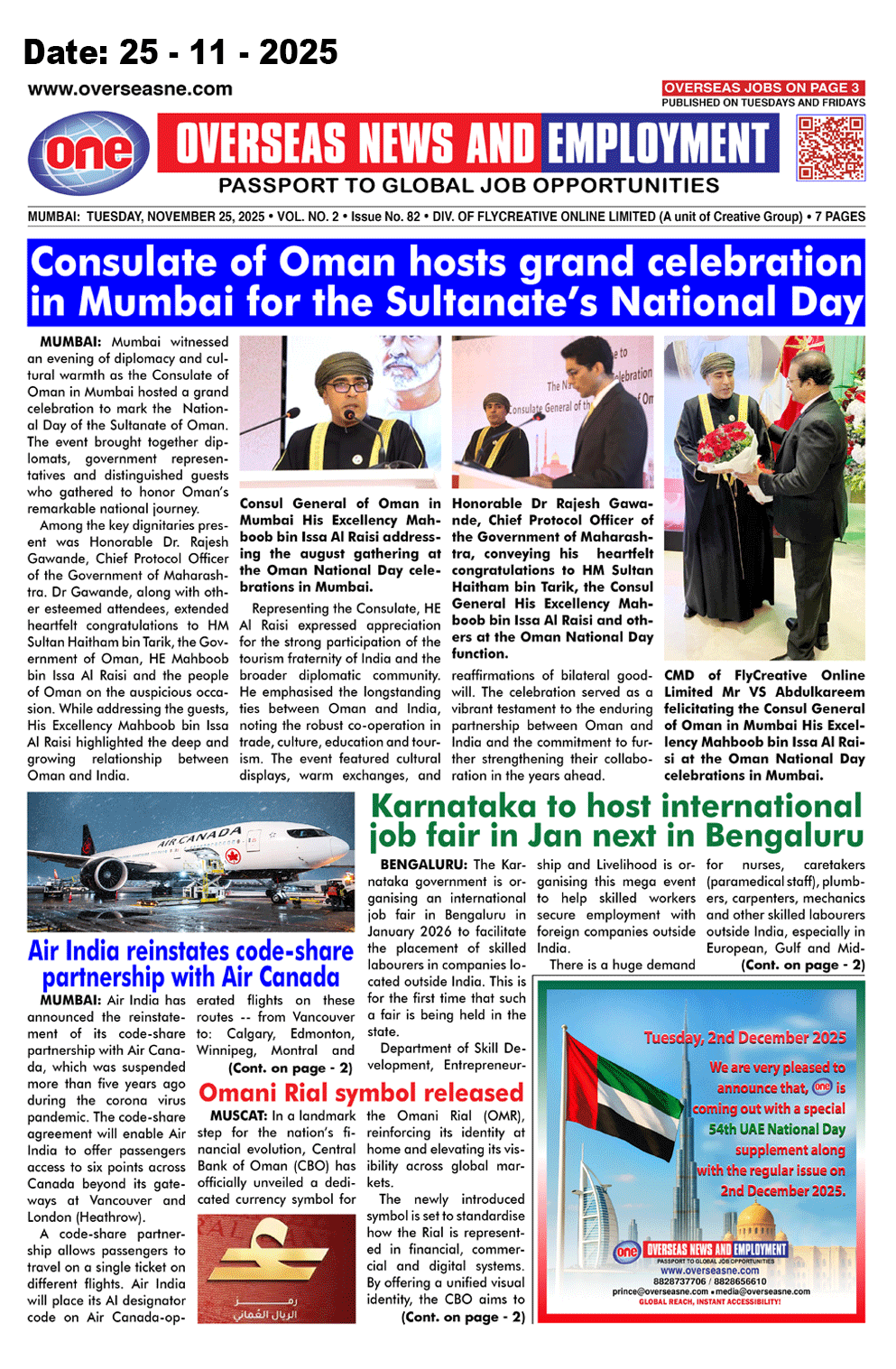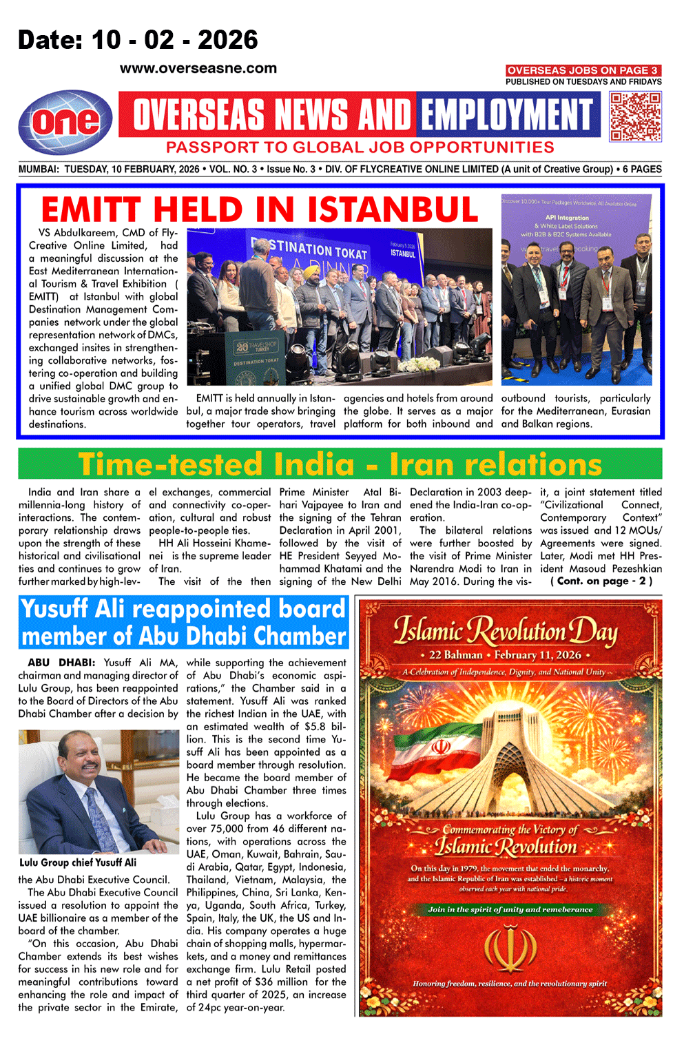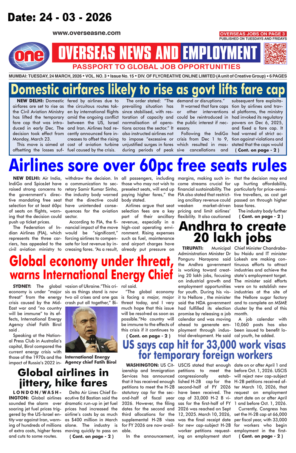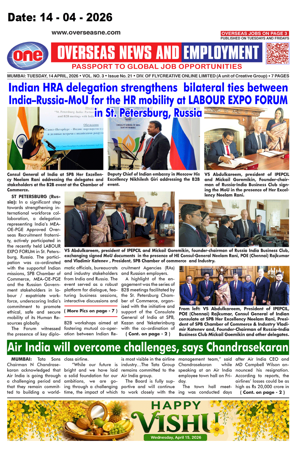 Overseas News And Employment is a division of Fly Creative Online Pvt Ltd, Mumbai.