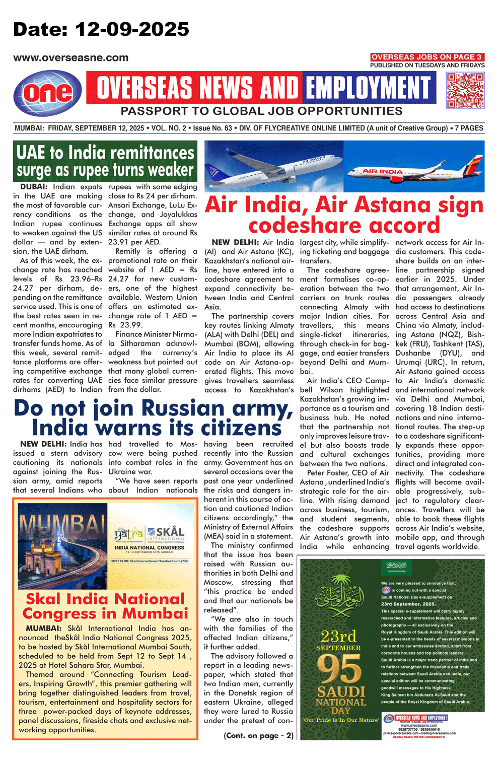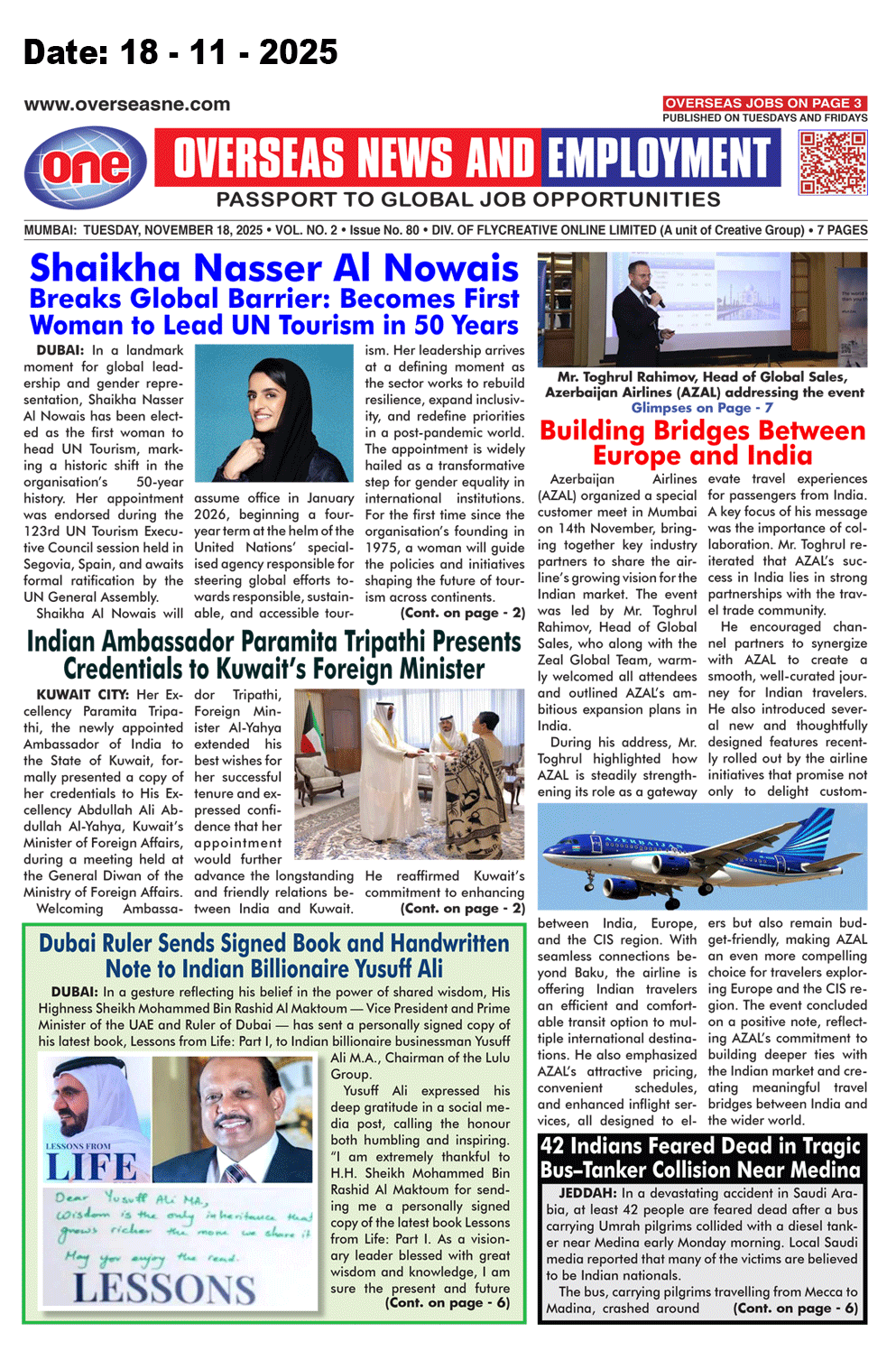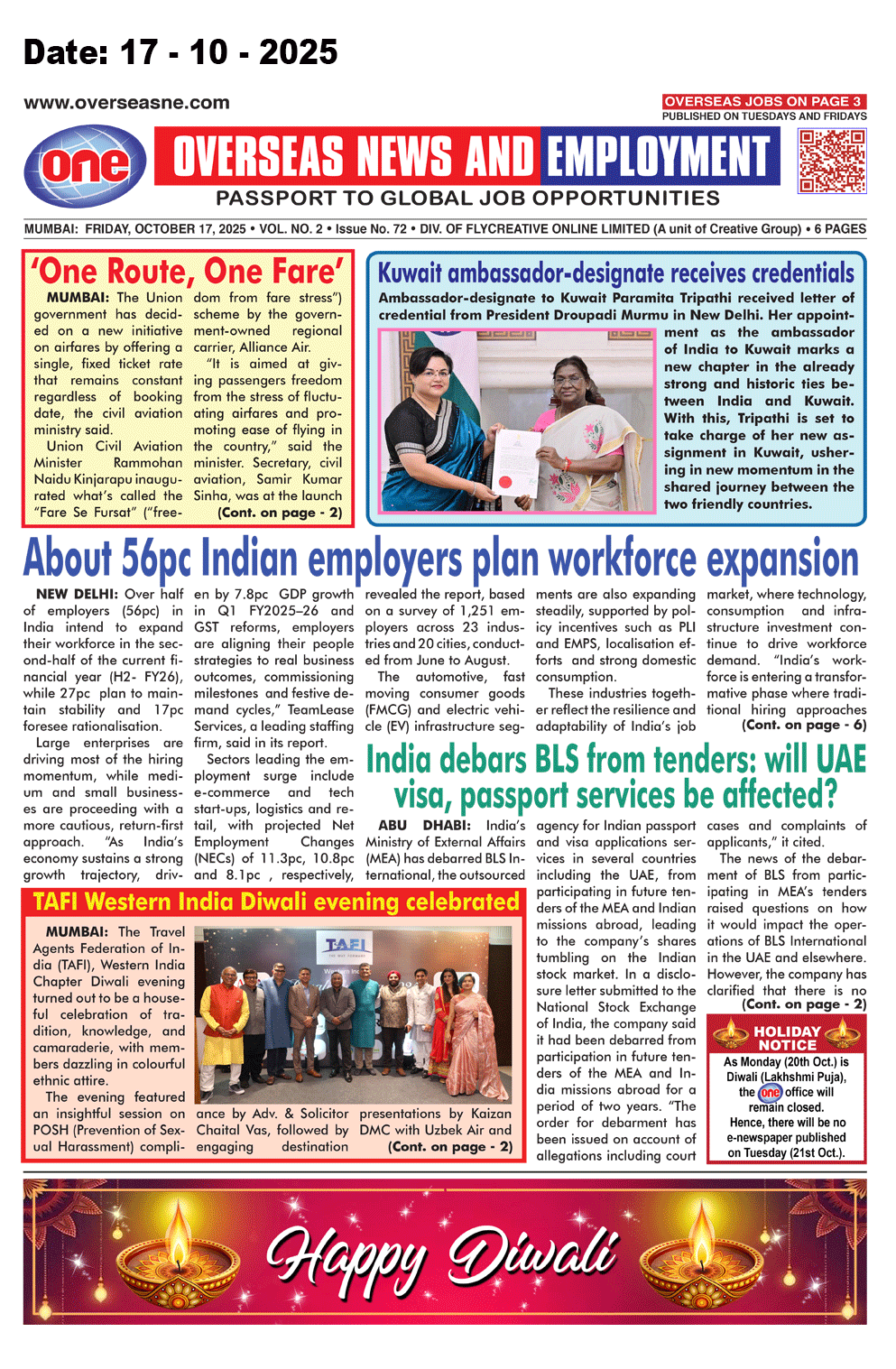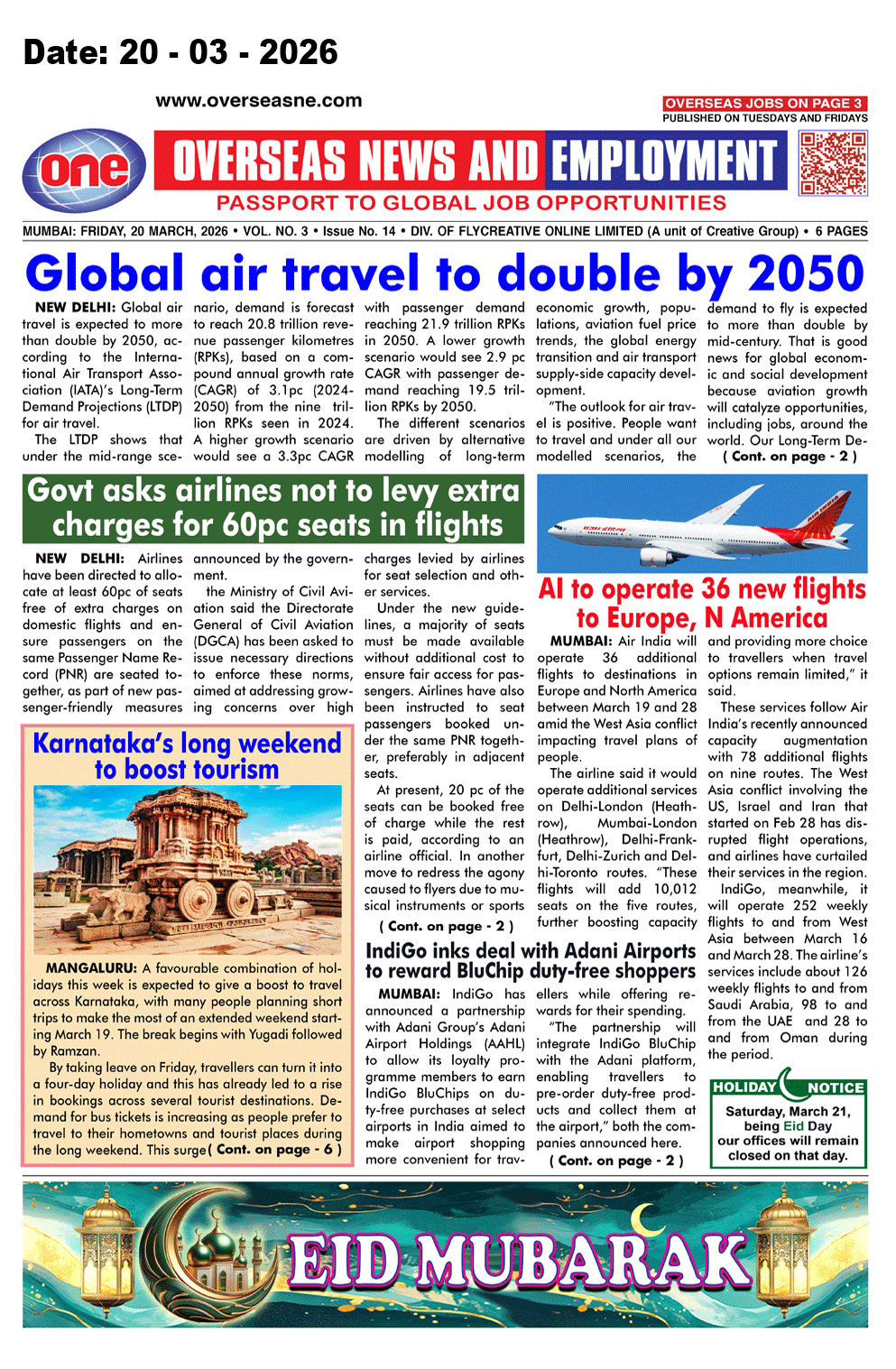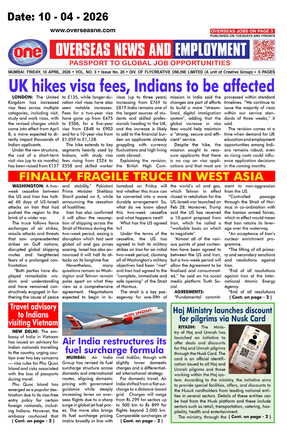 Overseas News And Employment is a division of Fly Creative Online Pvt Ltd, Mumbai.